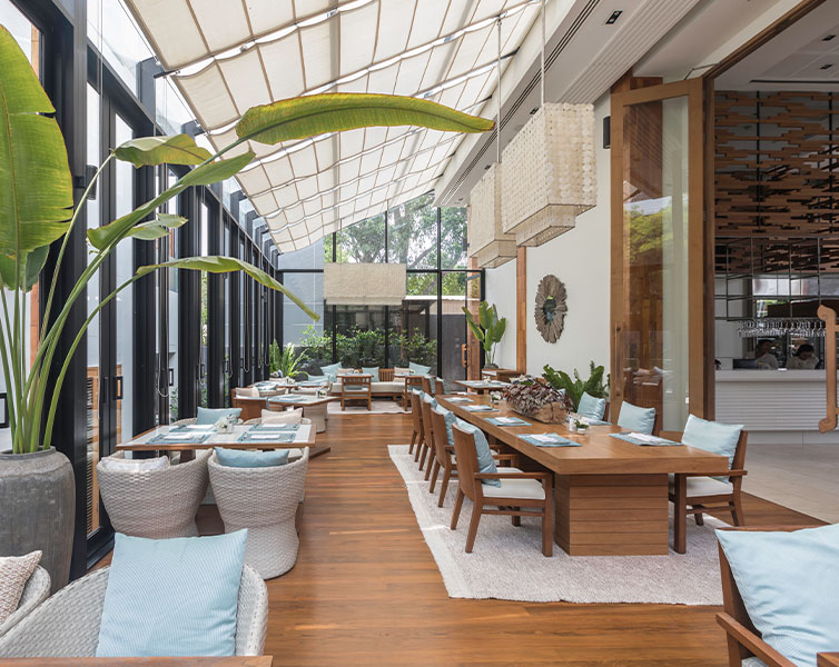 Opportunities for indulgent relaxation abound around the pool, on the glorious sandy beach that stretches away in both directions or in the sumptuous comfort of its suites. These are offered in a range of styles with the supreme comfort of extra-large beds, an opulent bathroom and its exclusive plunge pool. The top of the range Nidhrarom Suite exudes a modern design and the decadent opportunity of relaxation in true privacy with luxury in-room amenities to accommodate every need and its own exclusive 14-metre-long swimming pool (size 2.70 x 14.00 m; depth 1.10 m) a stylish sundeck with stunning sky and sea views plus outdoor and indoor enclaves.